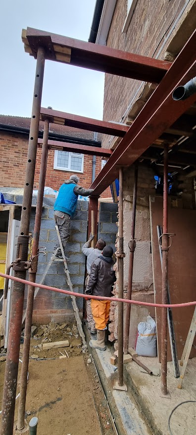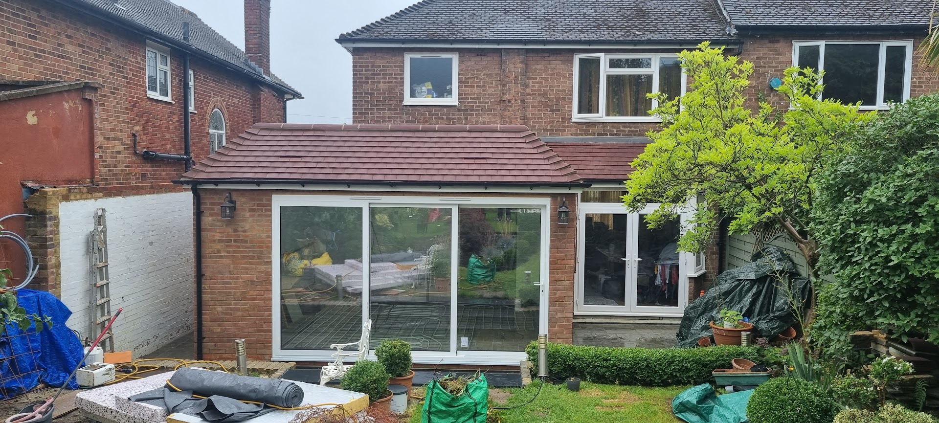 Extended approximately 5 metres to the rear and 1.8 metres to the side, respecting party wall agreements and matching the existing brickwork.