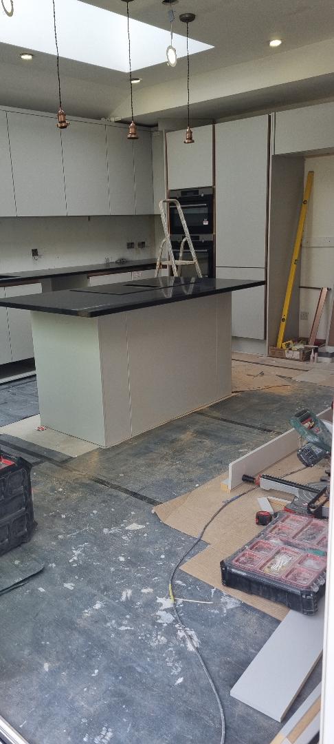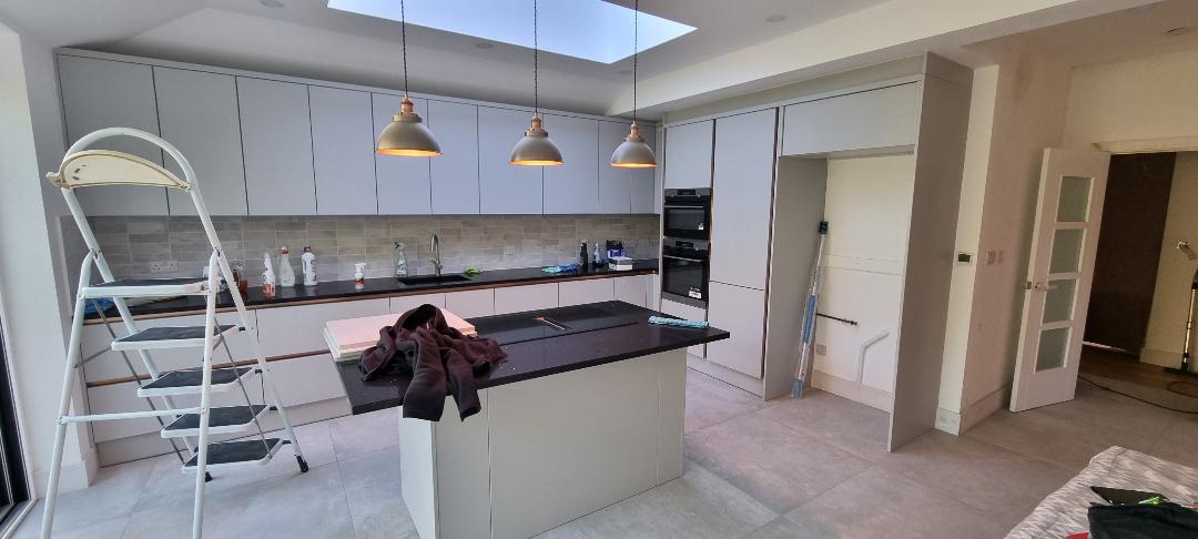 Installed a contemporary kitchen with a central island and integrated breakfast bar.