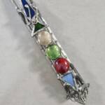 Vintage Silver-Toned Mezuzah Case with Coloured Glass Inlays